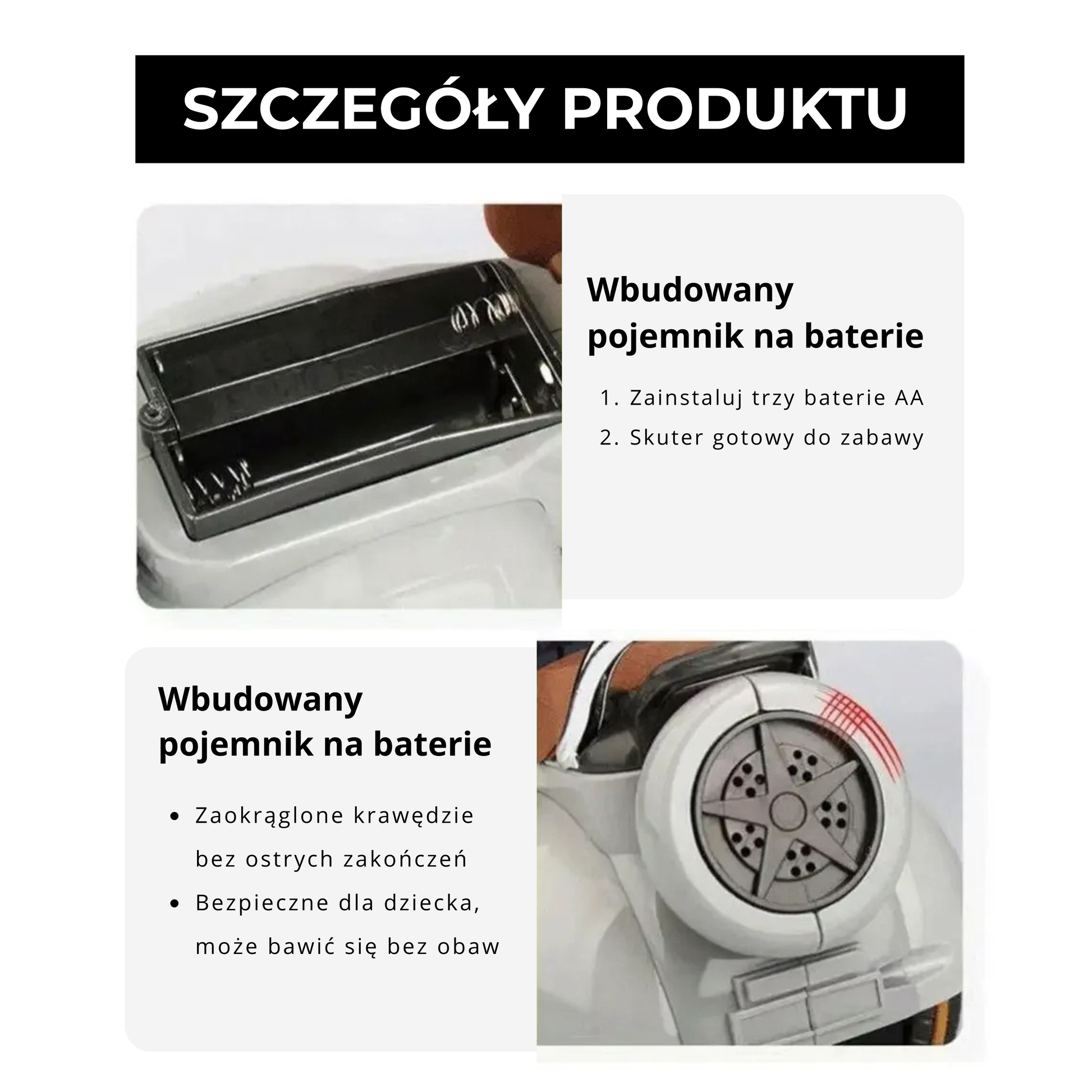 - Funkcja jazdy (wymaga 3× AA, brak w zestawie)